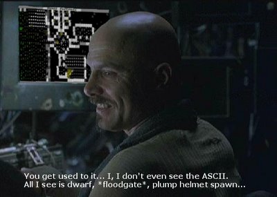 1) Берется Dwarf Fortress последней версии (т.е, df2012) и некоторое количество игроков. 2) Генерится мир. 3) Игроки вместе решают, куда (примерно) им селиться, и в каком порядке они будут играть. 4) Первый игрок находит подходящее место, и основывает КРЕПОСТЬ! (можно основать даже бастион). А заодно поименовывает всех стартовых гномов именами игроков, хехе. 5) После завершения внутриигрового года, игрок передаёт сейв и ход следующему игроку, а заодно постит доклад о своих свершениях. Причем, можно от имени персонажа. 6) Цикл продолжается до закономерного жуткого конца. Желающие? |